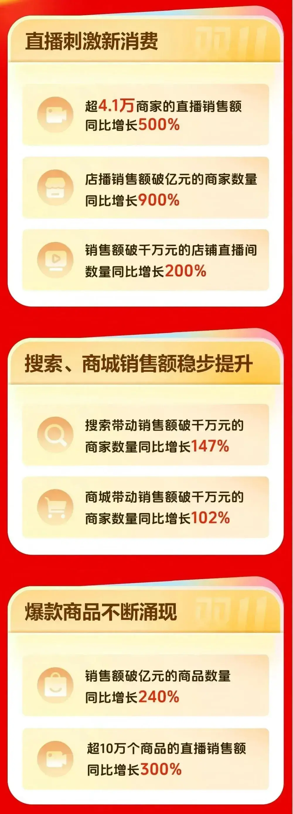 更关键的是平台趋势的倾斜,数据显示,抖音电商今年双11销量增长211%,破亿直播间增长900%,而这波增量的核心正是内容驱动型主播。