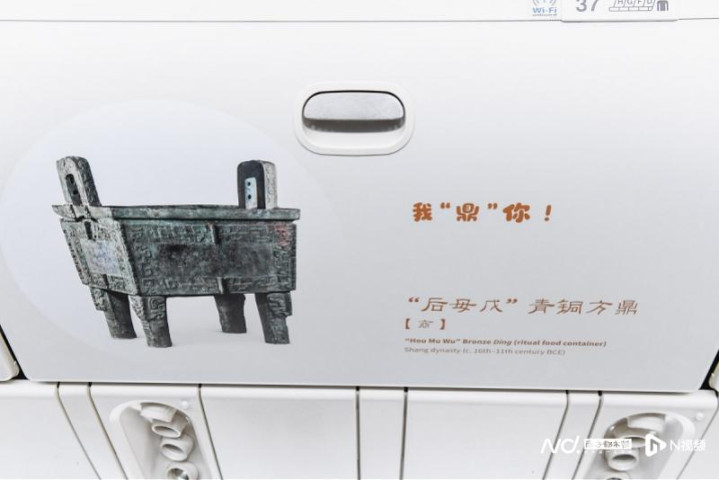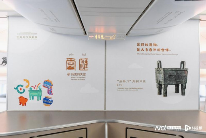 后母戊鼎坐镇正中,代表着国博人对乘客和机组成员的深情祝福:每一次出发,快乐抵达。