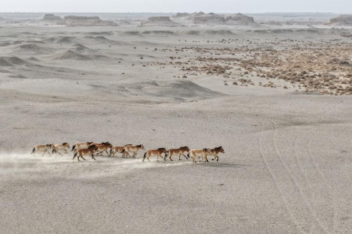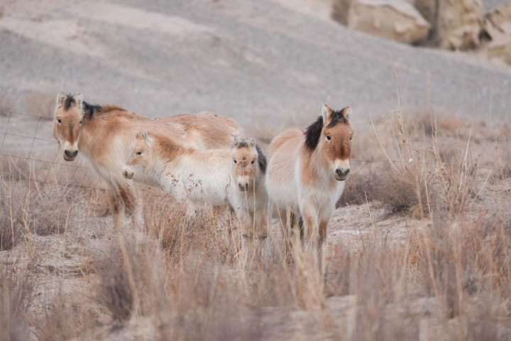 很难想象,这些看上去似乎与世无争的动物是地球上现存的唯一野生马种,一度在野外绝迹。普氏野马原产于中国新疆准噶尔盆地和蒙古国干旱荒漠草原地带,是拥有6000万年漫长进化史的“活化石”。然而,由于历史上盗猎猖獗、栖息地退化等多重因素,这一物种于20世纪中叶在中国野外绝迹。